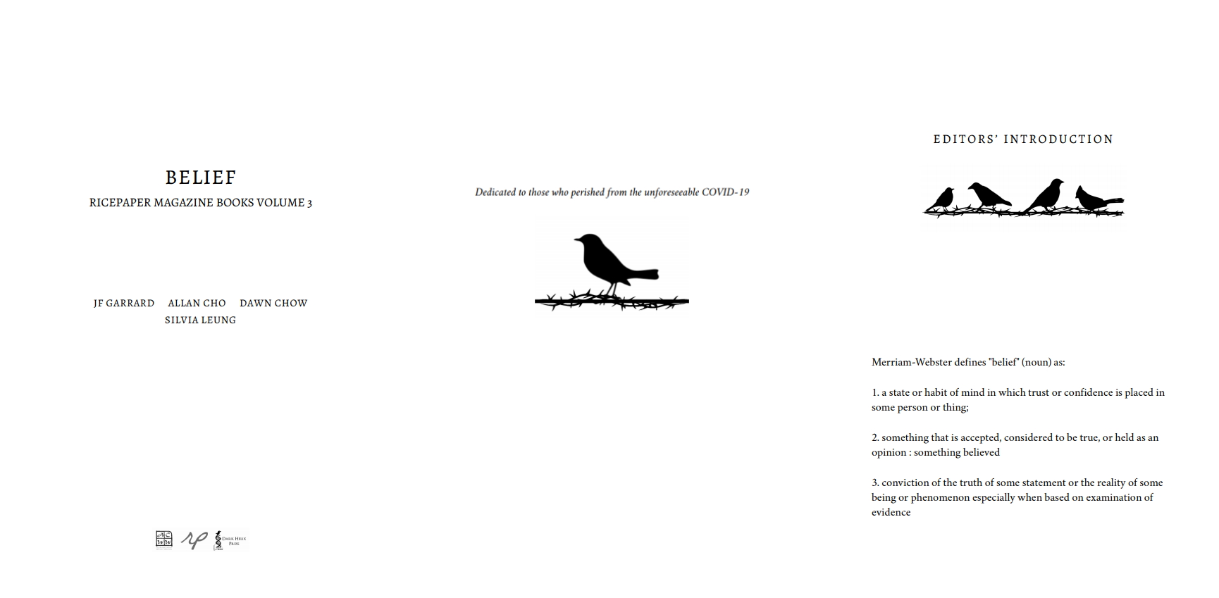 Belief contains fiction, poetry and non-fiction essays bounded to the theme of “belief,” a notion personal to each individual sharing a piece of themselves in their works. Each author shares a conviction of truth shaping the reality of life in the Asian diaspora.